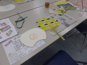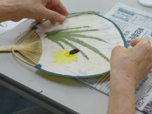 ↑うちわも骨に和紙を貼ってつくってみました
