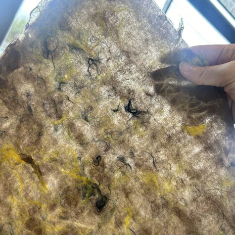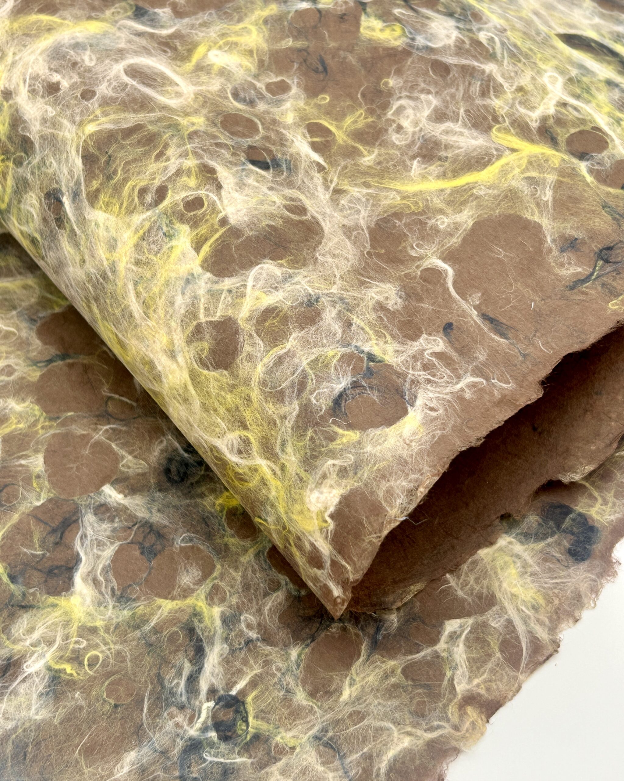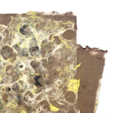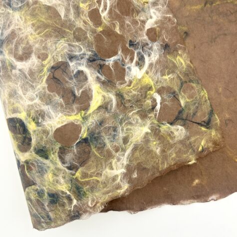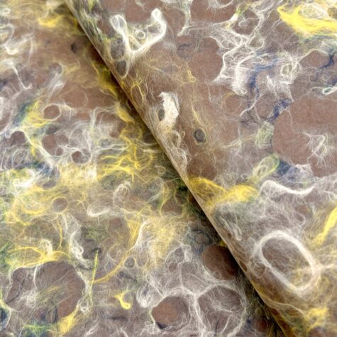 茶色ベースに黄色・白色・青色の繊維が漉き込まれています。