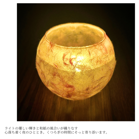灯りをともすと、落水模様と繊維の表情がやさしく浮かび上がり、