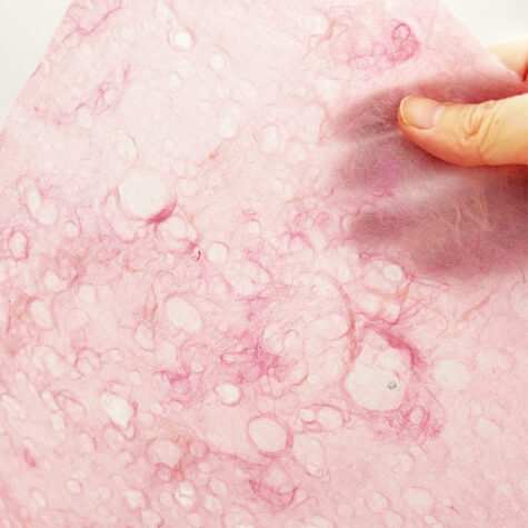 光に透かすと、落水模様と繊維の重なりの美しさが際立ちます。